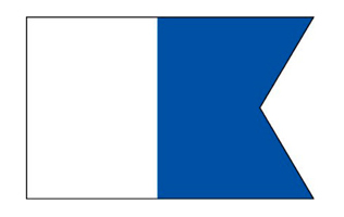 Dykker i vandet skal tilkendegives, hvor det bedst kan ses, ved det internationale signalflag A mindst 1 m højt som udspilet flag eller plade.